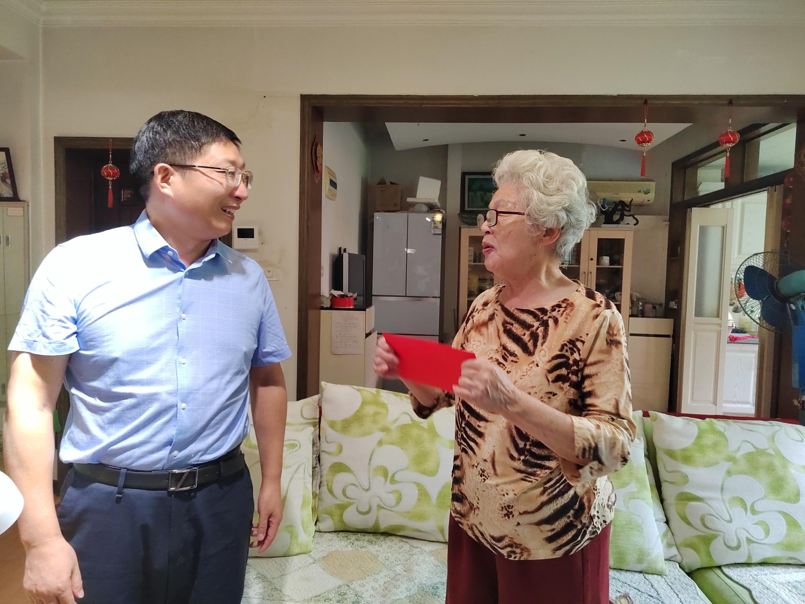 慰問中,省科協(xié)領(lǐng)導與老同志親切交談,關(guān)切詢問他們的生活情況、身體狀況,了解他們的需求,傾聽他們對科協(xié)發(fā)展的意見建議。
