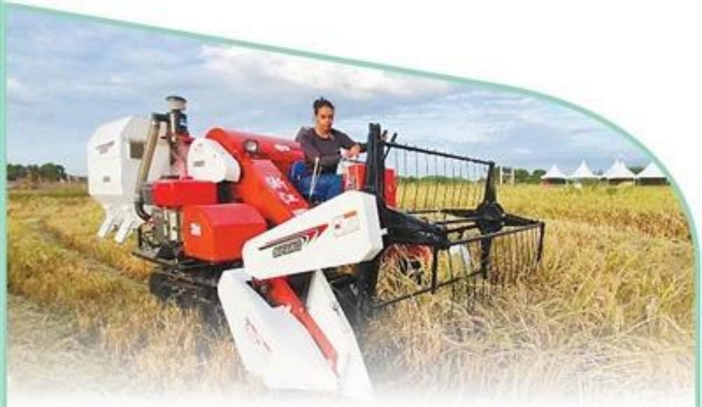 在巴西阿波迪的一處稻田里,一名巴西婦女在家庭農(nóng)場操作中國生產(chǎn)的水稻聯(lián)合收割機。 迪奧任塞·諾夫雷加攝
